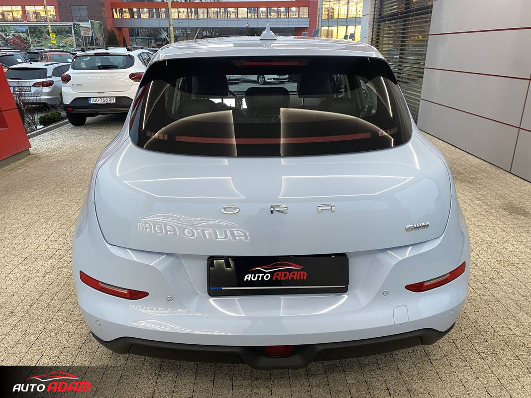 Batéria 47 kWh, Lane assist, Front Assist, Side and Rear Assist, Asistent diaľkových svetiel, Asistent dopravnej zápchy, Núdzové brzdenie chodcov, Auto Hold, Kamerový systém 360 stupňov, Rozpoznávanie únavy vodiča AFS, Rozpoznávanie tváre Face ID, Dvojitá obrazovka: 10,25" digitálny prístrojový panel + 10,25" interaktívny informačno-zábavný systém, Bezdrôtové nabíjanie mobilného telefónu, Systém inteligentného kľúča, Hlasový asistent „Hello ORA“