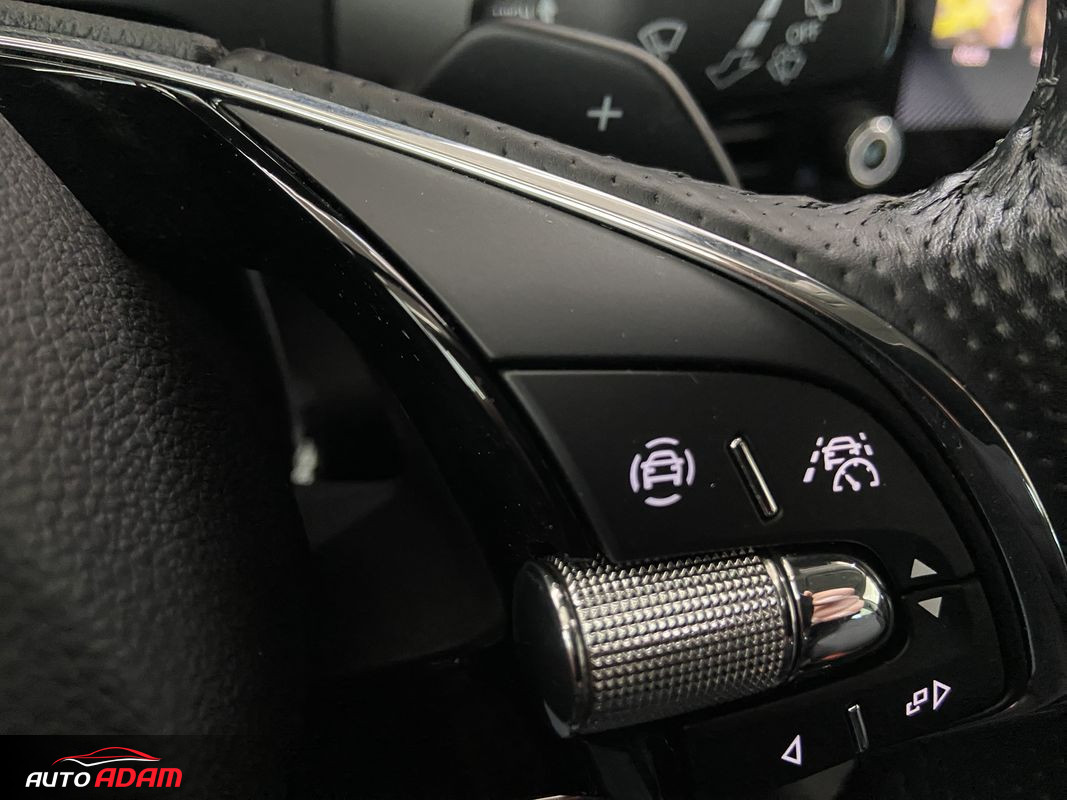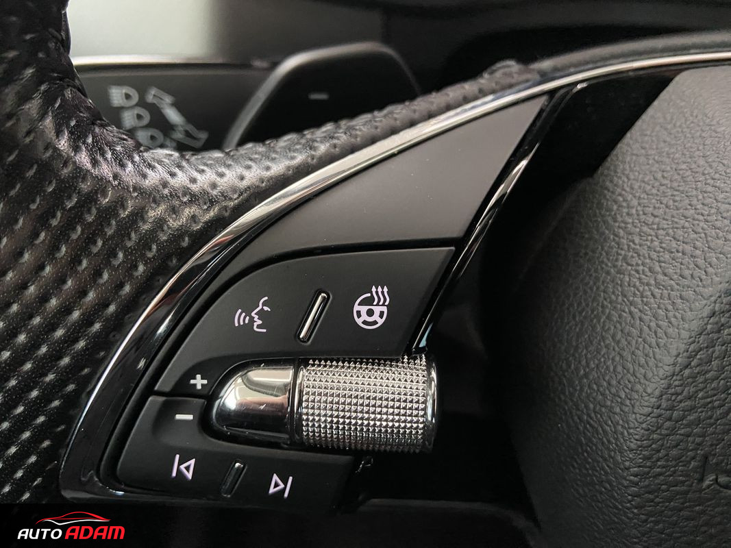 2x12V zásuvka, 2x USB-C, F1radenie pod volantom, vyhrievané čelné sklo, ACC regulácia vzdialenosti, Front Assist, Lane Assist, Side Assist, Identifikácia dopravných značiek, Android Auto, Apple CarPlay, MirrorLink, bezdrôtové nabíjanie telefónu, Autohold