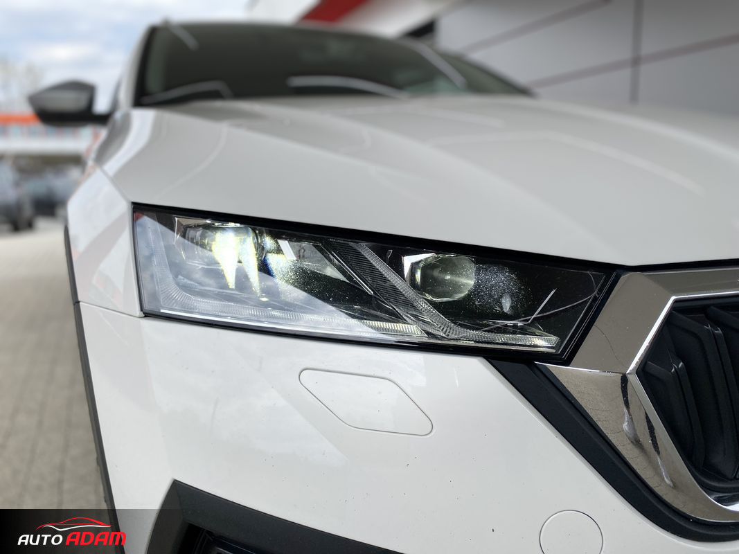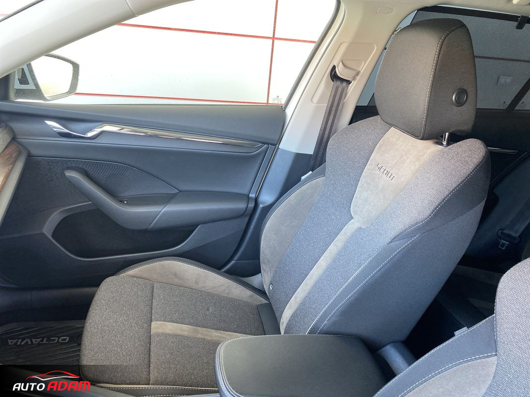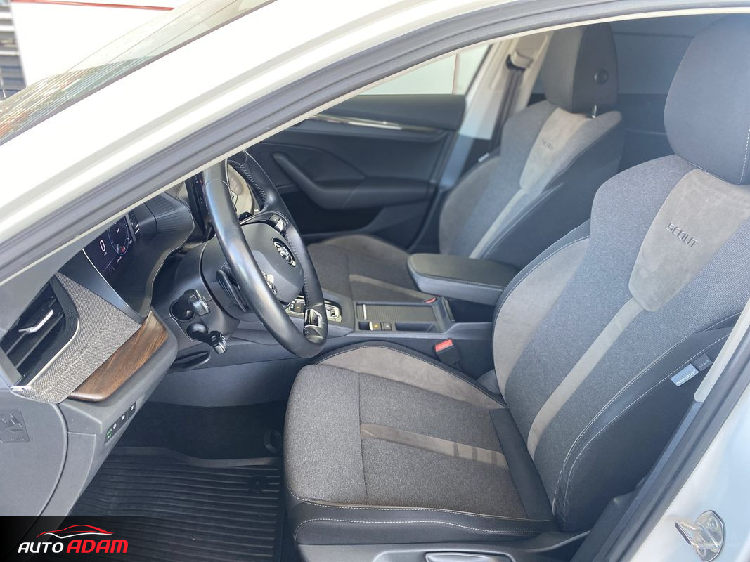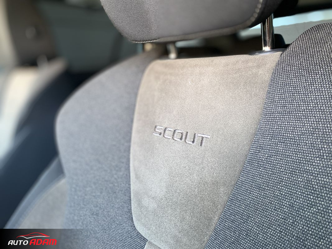 Dynamic Light Assist. Virtual Cockpit, Bezpečnostní Asistenti: ACC, (automatická regulácia vzdialenosti), Lane Assist (jazdné pruhy), Side Assist (mŕtve uhly), Rozpoznanie únavy, Eco-asistencia, Front Assist. SmartLink: Android Auto, Apple CarPlay, MirrorLink. Ambientné osvetlenie, Interiér prešívaná látka+hnedá alcanatara. Predné sedadlá potiahnuté látkou ThermoFlux, Scout dizajnové doplnky (drevo). WIFI, SOS Tlačidlo. Tieniace rolety na zad. sedadlách. Bezdrôtové nabíjanie telefónu, 2x USB-C.